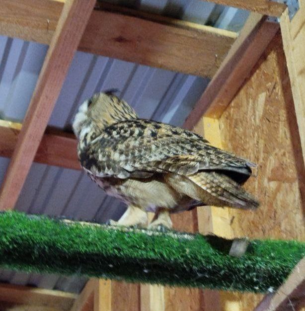 «На фото вы можете видеть и отца семейства. „Мать драконов“ сфотографировать не удалось — чуть более продолжительное знакомство с разъяренной самкой филина могло существенно навредить здоровью орнитолога... Эта здоровущая бестия была совершенно не рада вторжению в ее пенаты и интересу людей к ее милым динозаврикам! Она не только грозно раздувалась и топорщила крылья, но и налетая, пыталась когтями ударить по голове вторженцев», — рассказали на станции.