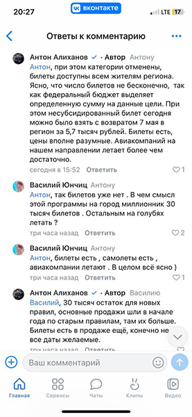 Программа субсидирования авиабилетов для всех жителей региона должна была заработать 1 мая. Власти анонсировали продажи в кассах и онлайн. На деле возможность оформить билеты на сайте появилась только 3 мая у одного из перевозчиков.