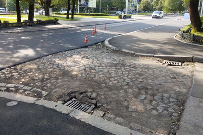 Глава администрации Калининграда Елена Дятлова рассказала, можно ли оставлять брусчатку, которую подрядчики время от времени обнаруживают под асфальтом при ремонте улиц. В качестве примера был приведен ремонт улицы Брамса, где подрядчик снял с брусчатки старый асфальт, а сверху положил новый, не убирая булыжник.