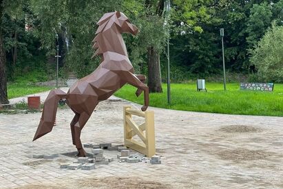 В Черняховске завершается установка скульптуры коня, который изготовлен местными умельцами в рамках проекта «Городская долина». Об этом сообщил в своем телеграмм-канале глава администрации Черняховского муниципального округа Сергей Булычев.