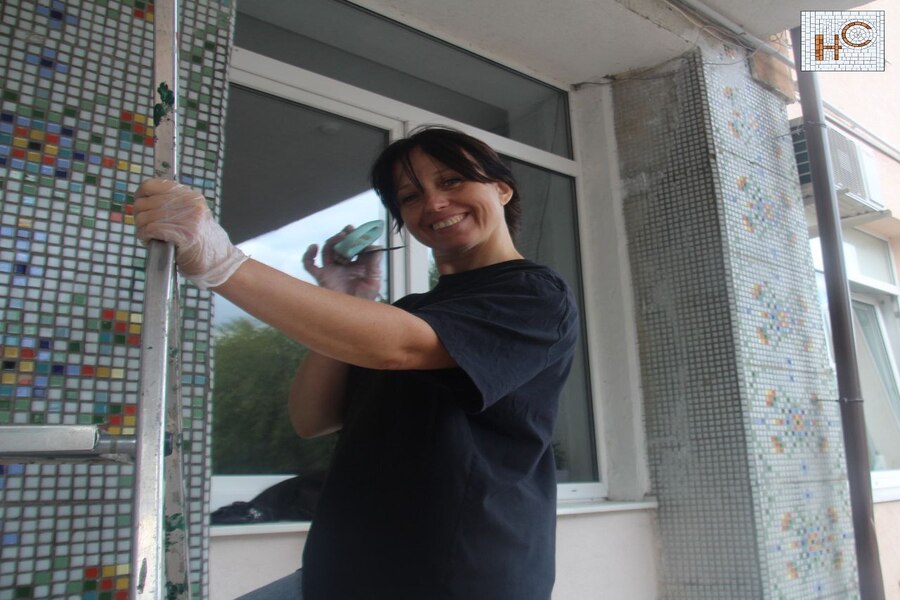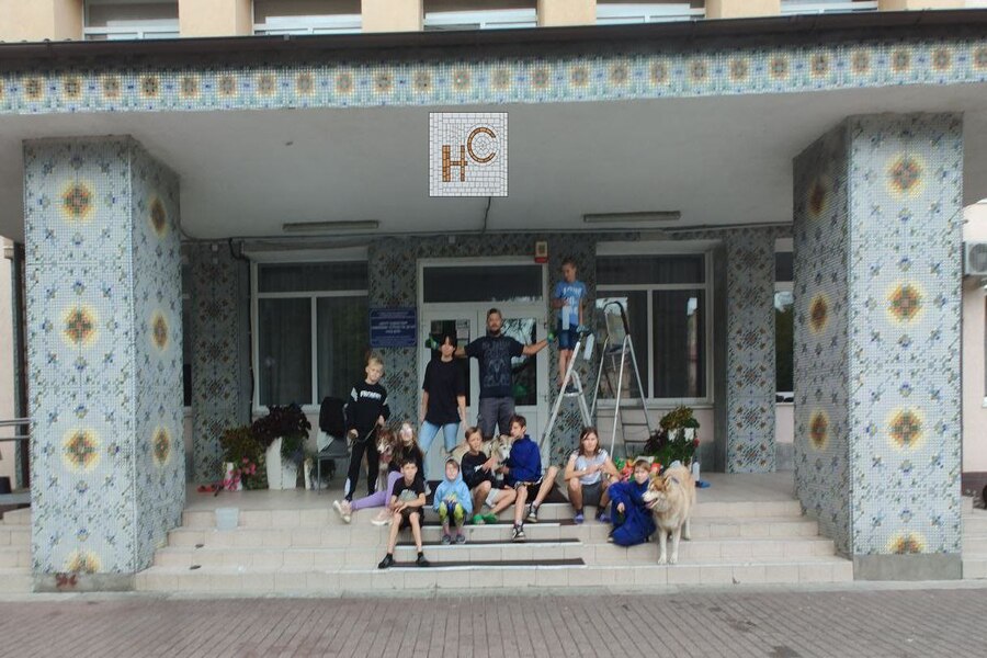 Воспитанники «Нашего дома» привели в порядок мозаику у входа в центр (фото)