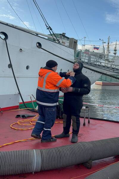 Водолазы начали проводить очистку подводной части корпуса судна «Витязь» (фото)