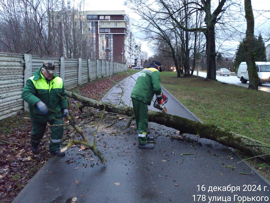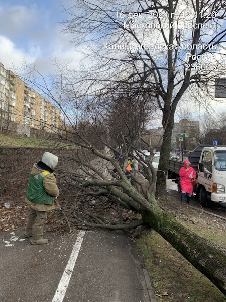 В понедельник, 16 декабря, в Калининградской области было объявлено штормовое предупреждение. В школах Калининграда ввели свободное посещение. В расписании аэропорта «Храброво» произошли изменения. Максимальный зафиксированный порыв ветра в Храброво достиг 27 м/с, в Калининграде — 23 м/с. Ветер повалил новогодние украшения на площади Победы. В Зеленоградском районе авто врезалось в упавшее дерево, в результате чего пострадал ребёнок.