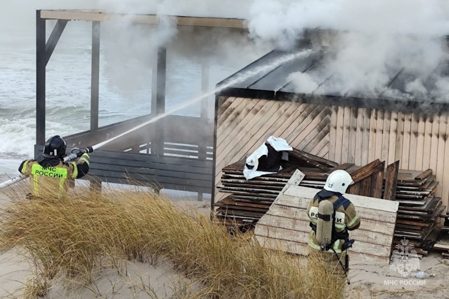 В Янтарном произошёл пожар в одном из кафе на побережье. Судя по фотографиям, опубликованным пресс-службой регионального управления МЧС России, речь о заведении «Прожарка».