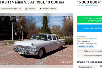 «Представительский легковой автомобиль выпускался малой серией на Горьковском автомобильном заводе в Нижнем Новгороде c 1959 по 1981 года. За 22 года было выпущено 3 189 автомобилей данной модели. Представленный экземпляр был выпущен в 1961 году и полностью отреставрирован в 2015-2016 годах», — сообщают представители сервиса.