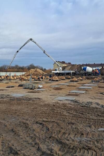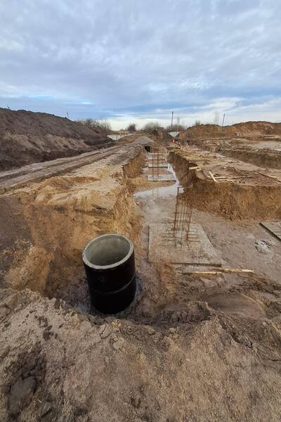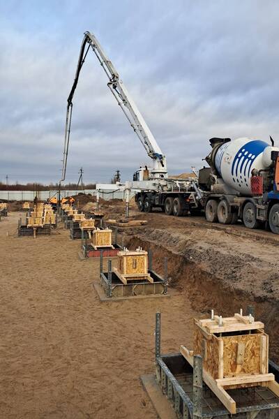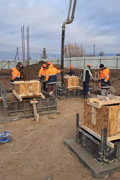 Сейчас ведутся работы по заливке фундаментов-стаканов, которые послужат основой для металлоконструкций здания с последующим возведением колонн. Кроме того, на теннисных кортах началась укладка дренажной системы, которая обеспечит надёжный отвод воды.