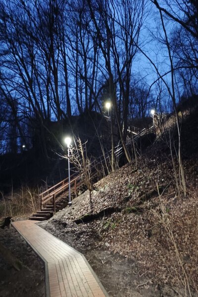 «Замостили дорожки, а на одном участке, чтобы не повредить корни деревьев, сделали деревянный настил. Отреставрированы мостики и лестница,» — рассказал он.