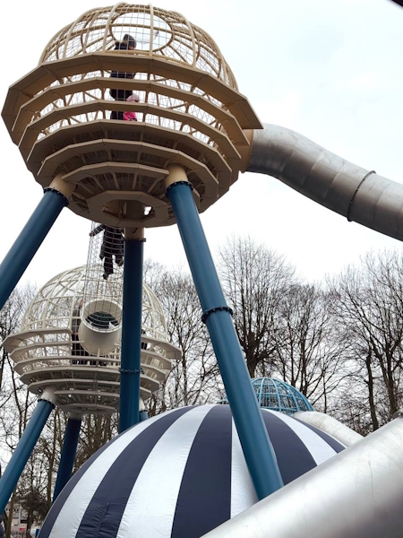 Основные элементы «космической» площадки смонтировали в декабре 2024 года. Оборудование, которое было произведено в Челябинске, превосходит по масштабам все площадки, которые ранее открывались на территории города. «Это вторая подобная площадка в России, но с такой вот высокой башней первая, — сообщил руководитель „Дирекции ландшафтных парков“ Андрей Карачинов. — Похожая установлена в Обнинске, но с таким высоким элементом это первая в России. Самый высокий элемент 9,9 метра по верхнему уровню».
