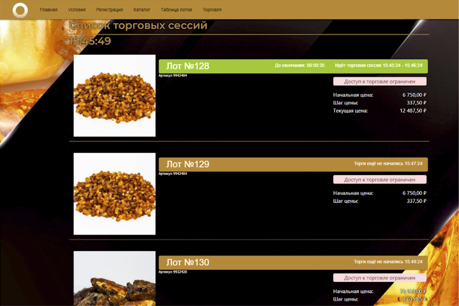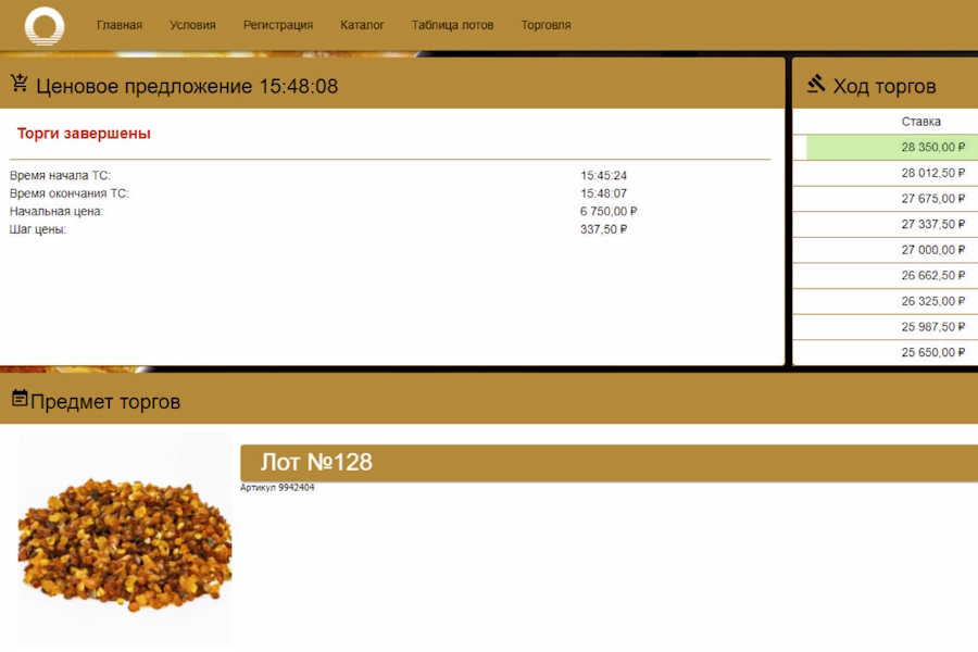 «В ходе первого аукциона мы зафиксировали самую высокую активность участников за все десять лет проведения торговых процедур для переработчиков — в среднем 10 ставок за лот. Для оффлайн-формата рекордный показатель в среднем составлял не более двух ставок за лот. У многих лотов за 2-3 минуты начальная цена взлетала в 4-6 раз», — прокомментировал руководитель службы реализации янтарного сырья Калининградского янтарного комбината Максим Ломакин.