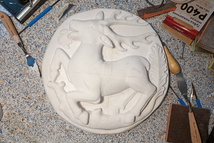 Сейчас, как уверяет мастер, готовится ещё две копии утраченных декоративных элементов: упомянутый «Башнями Востока» барельеф «Олень» и боковая консоль с растительным орнаментом. Их монтаж состоится в конце марта, либо в начале апреля.