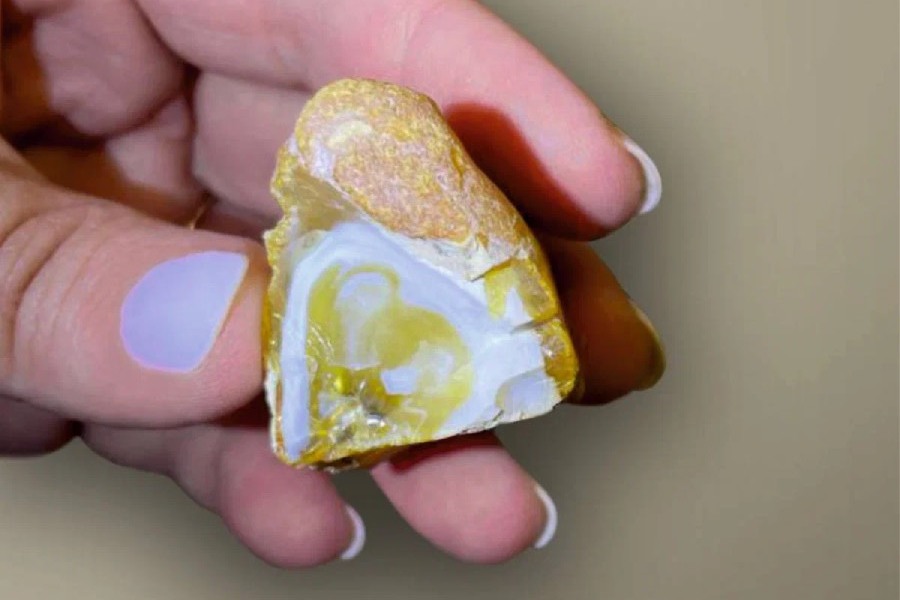 В 2023 году на сортировочном участке предприятия обнаружили похожий «сюрприз природы» — «улыбающийся» самоцвет. В самой сердцевине камня природные цветовые вихри «нарисовали» подмигивающий смайлик.