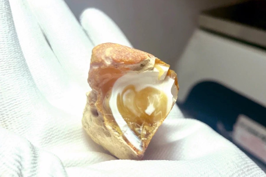 На Янтарном комбинате во время ручной сортировки был обнаружен камень, в котором все основные виды балтийского янтаря сформировали рисунок, похожий на сердце. Об этом сообщает пресс-служба предприятия.