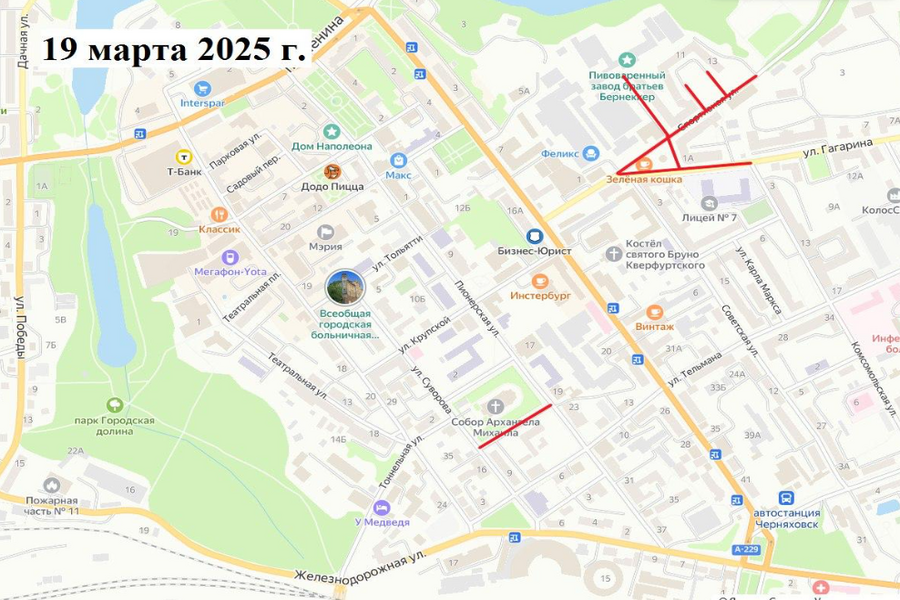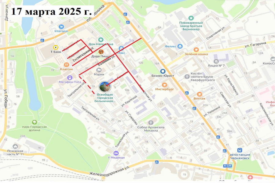 17 марта — перекрытие Пионерской, Калинина, Госпитальной и других;