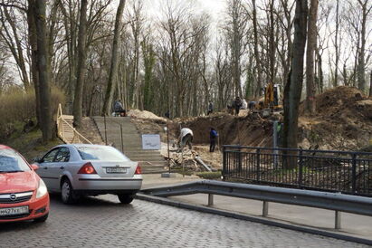 В парковой зоне на улице Дмитрия Донского раскопали холм в районе бывшего кладбища для прокладки там пандуса. О том, что работы проводятся за счёт застройщика, построившего высотку рядом с кольцевой развязкой на той же улице, «Новому Калининграду» сообщил главный архитектор Калининграда Андрей Анисимов.