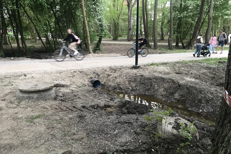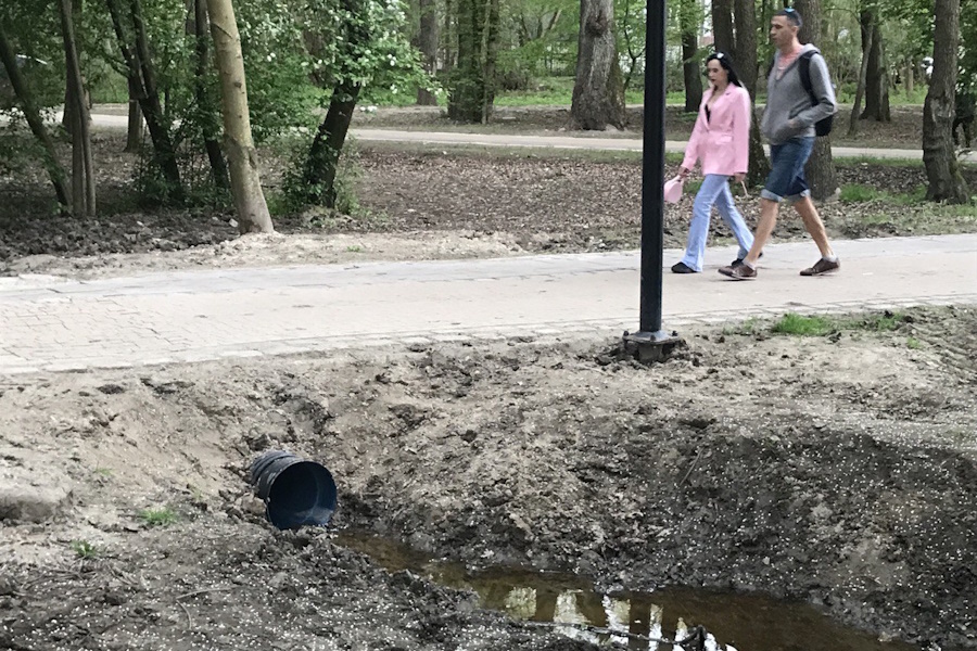 В Макс-Ашманн-парке ведутся работы на ранее уже благоустроенной территории, рассказали «Новому Калининграду» местные жители. В «Дирекции ландшафтных парков» сообщили, что пришлось переложить трубу, поскольку прежняя не справлялась с отводом воды. .