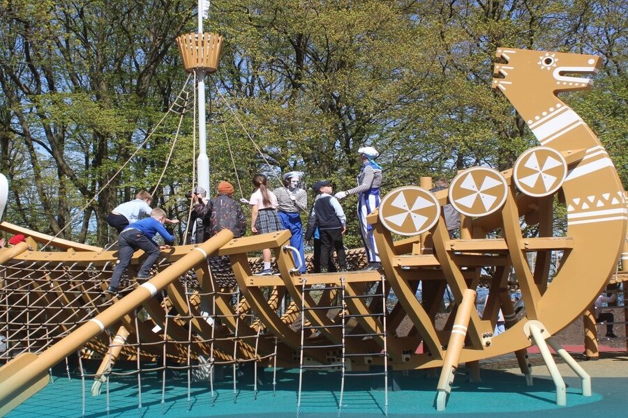 На территории также обустроены танцплощадка, амфитеатр, скейт-площадка, детские игровые комплексы, пешеходные дорожки и оборудование для маломобильных граждан.