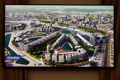 Впервые областные власти заявили о планах по созданию курорта на побережье Поваровки под Янтарным в апреле 2023 года. Его особенностью должен стать 500-метровый бассейн с подогреваемой морской водой. На курорте хотят построить отели категорией пять звезд (3150 номеров) и четыре звезды (7330 номеров). Также предусмотрено строительство жилья. Как отмечал экс-глава Корпорации развития области Андрей Толмачев, «Белая Дюна» в перспективе — это новый город.
