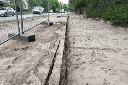 Демонтаж трамвайных рельсов на проспекте Победы в Калининграде идёт в ходе устройства тротуара. Об этом сообщила администрация города в комментариях на странице Алексея Беспрозванных «ВКонтакте».