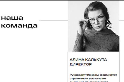Информация об Алине Калькута опубликована на сайте фонда «Креспектива» в разделе «наша команда». «Руководит Фондом, формирует стратегию и выстаивает внешнюю коммуникацию», — отмечается на сайте. При этом по данным Единого государственного реестра юрлиц, руководителем фонда в ранге временно исполняющей обязанности директора по-прежнему числится Наталья Губарева. На сайте «Креспективы» в настоящее время она значится в должности заместителя директора.