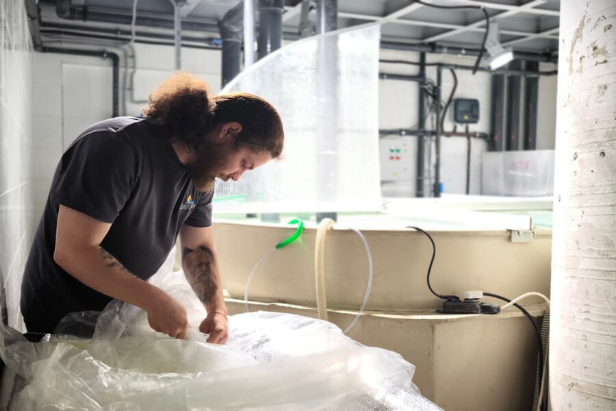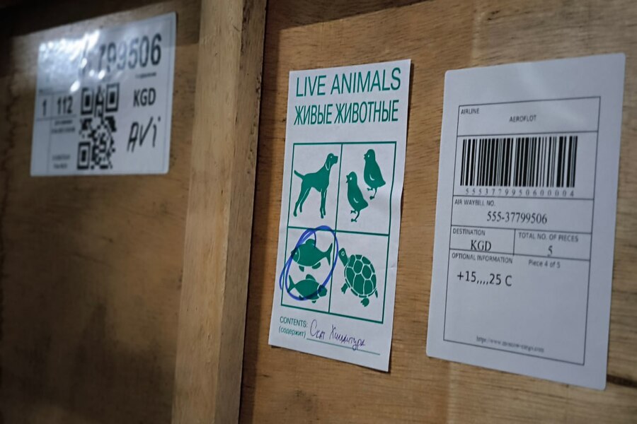 Для каждого ската при перевозке было предусмотрено отдельное «посадочное место» — деревянные защитные короба, длина которых достигает полутора метров. Специалисты компании-поставщика гидробионтов «Аква Лого Инжиниринг» поместили рыб в специальные пакеты, наполненные на 1/3 водой и на 2/3 воздухом, обогащенным кислородом и помещенные в термокороб с пенопластовыми вкладышами.
