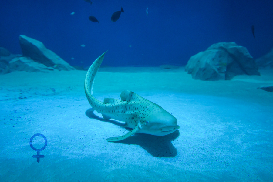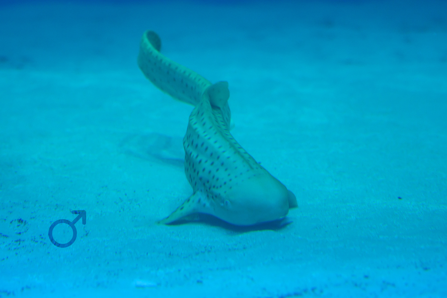 «В аквариумах „Планеты Океан“ поселились три вида акул — белоперые, черноперые и зебровые — всего девять представителей. Для начала мы решили дать имена зебровым акулам — их всего две. Зебровых акул можно встретить в тропических водах Индийского и Тихого океанов. Наши — родом из Индонезии — это самка и самец, им исполнилось два года. На первое время самку мы поселили в тоннельный аквариума, а самец разместился в первом — самом большом аквариуме», — рассказала главный инженер-рыбовод музея Татьяна Аксёнкина.