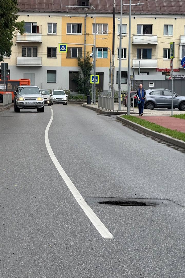 На улице Павлика Морозова, капитально отремонтированной в 2022 году, образовалась просадка на месте канализационного люка посередине проезжей части. Очевидцы сообщили «Новому Калининграду», что опасный участок находится ровно напротив здания, в котором находится комитет развития дорожно-транспортной инфраструктуры мэрии Калининграда.