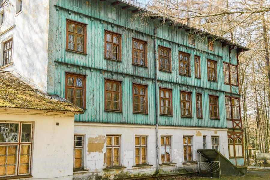 «Здание, примыкающее фасадом к Лиственничному парку, было построено не позднее 1904 года, — напомнил Бондаренко. — До 1945 года в нем располагался пансионат „Лесной замок“, после здание принадлежало санаторию „Светлогорск“. С 2015 года объект не эксплуатировался, техническое состояние было предаварийным, за время эксплуатации здание утратило часть внутренних перекрытий и кровли, шпиль над фронтоном и другие отличительные черты».