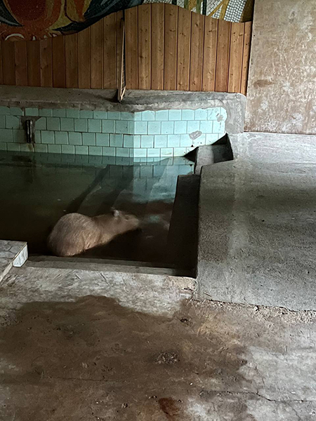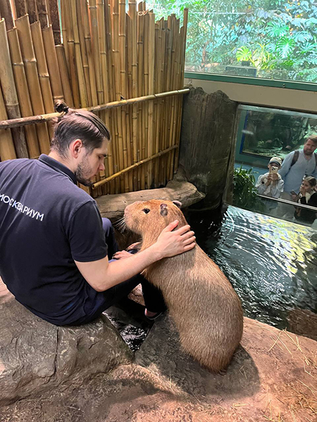 Капибару по кличке Пух перевели в вольер к копытным животным. В зоопарке предполагают, что он тоже может «заинтересоваться тренингами».