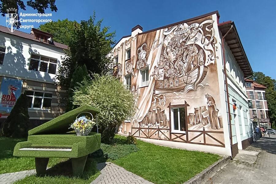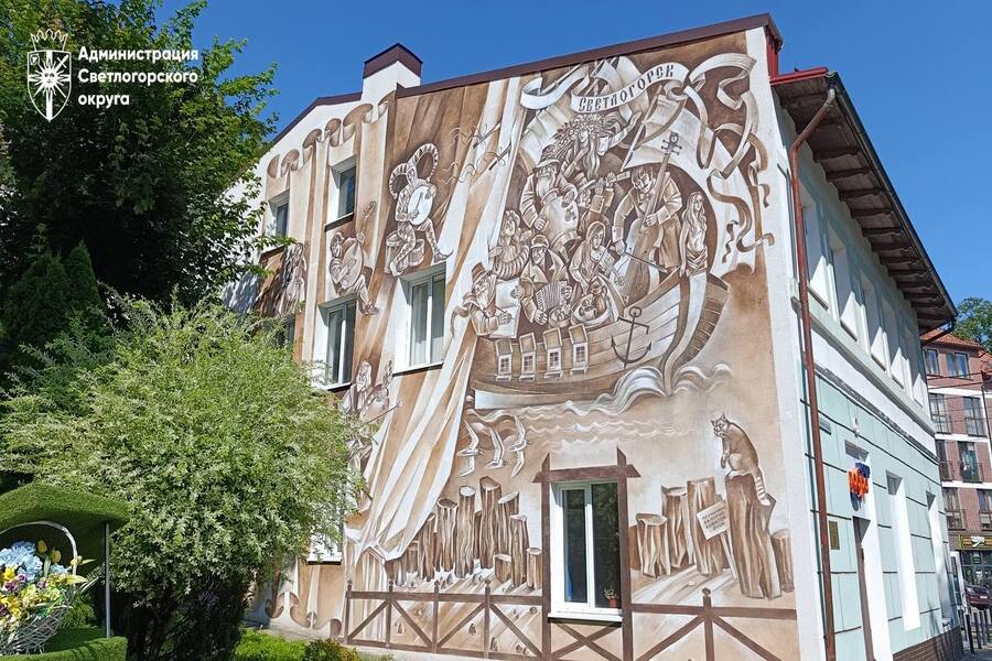 На здании бывшей «первой столовой» на Калининградском проспекте, 35, в Светлогорске произошли изменения. Как сообщает администрация округа, автор прежней версии мурала, художник Валерий Ковалев, с конца весны трудился над обновлением картины, ставшей «визитной карточкой» города.