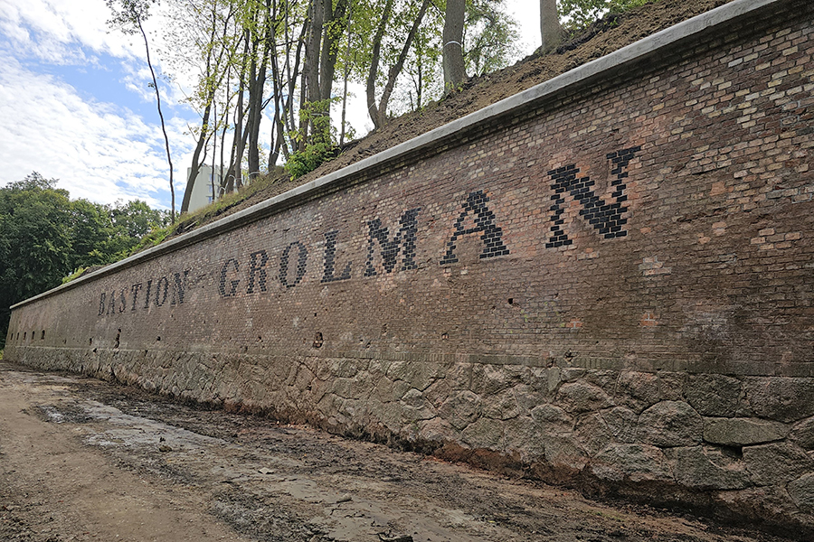 «В ходе ремонта подпорной стены объекта культурного наследия регионального значения „Бастион „Грольман“, 1851 г.“ (город Калининград, улица Литовский вал, 21, 21д.) пользователь ООО „Актив“ восстановил сильно повреждённую историческую надпись. Сам ремонт названного архитектурного элемента практически завершён», — отметили в службе, приложив «фотофиксацию по принципу „было-стало“».