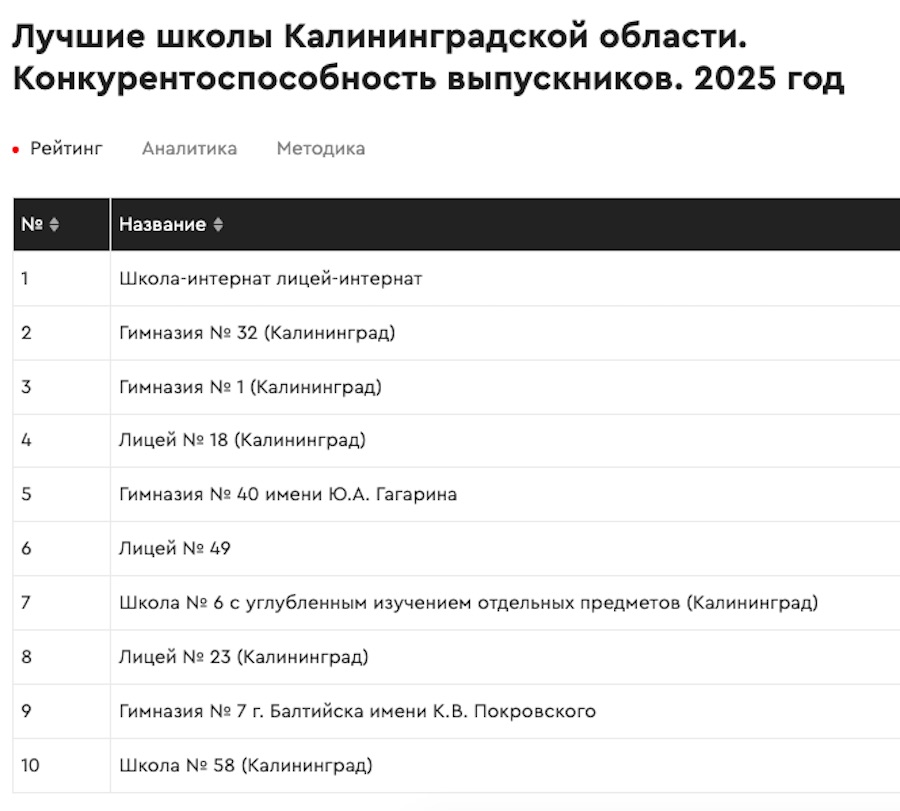 Гимназия № 40 возглавили топ-10 лучших школ Калининградской области по количеству выпускников, поступивших в ведущие вузы России. Традиционный рейтинг RAEX подготовлен рейтинговым агентством «РАЭКС-Аналитика» на основе данных о выпускниках, зачисленных в предыдущие два года на очную форму обучения в вузы на 1-й курс.