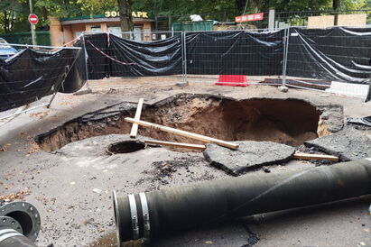 Работы по ликвидации провала на улице Чайковского в Калининграде продлили ещё на две недели. О том, что движение по улице смогут открыть не раньше конца сентября, «Новому Калининграду» сообщили в пресс-службе областного «Водоканала». Его официальный представитель заявил, что на текущий момент завершены подготовительные работы по согласованию раскопок с собственниками смежных коммуникаций и на этой неделе коммунальщики смогут приступить к замене участка трубопровода под дорогой и пешеходной зоной.
