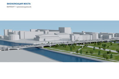 Первый вариант предполагает полный отказ от эстакады и её замену на обычную дорогу и два подъёмных моста через оба рукава реки.