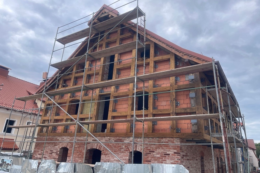 В Железнодорожном завершаются работы по восстановлению фахверкового склада (фото)