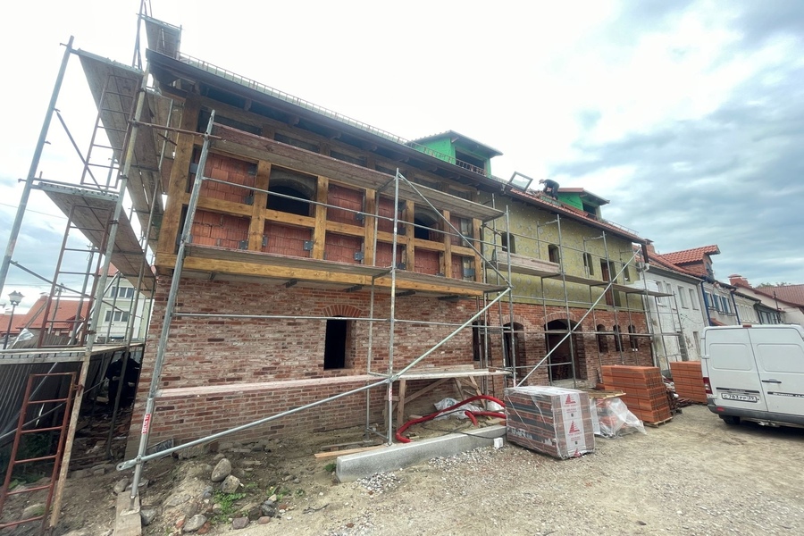 О том, что здание будет внешне иметь исторический облик, инвестор Вячеслав Воронин рассказывал «Новому Калининграду» в ноябре прошлого года, когда внутренний контур склада начали отстраивать из современного кирпича. Соседнее здание склада, как уверял Воронин, ждёт та же судьба, так как деревянные детали за долгие годы успели сгнить, а кирпич посыпаться. В мае 2025 года Щербатых говорил, что фахверк бывших складов в центре Железнодорожного будет не декоративным, а настоящим.