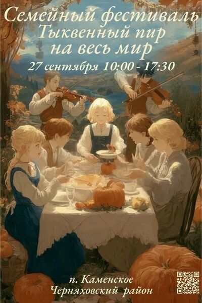 В п. Каменское Черняховского округа состоится семейный фестиваль «Тыквенный пир на весь мир» (6+). Он пройдёт в субботу, 27 сентября. Об этом сообщили организаторы в своём телеграм-канале.