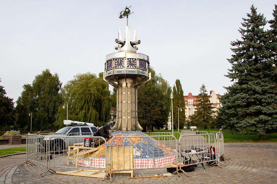 В Калининграде на арт-объект «Мировые часы» вернулись циферблаты, отреставрированные мастером-часовщиком Александром Кучеренко. Об этом сообщает паблик «Наследие стен», активисты которого занимаются восстановлением мозаики на том же сооружении.