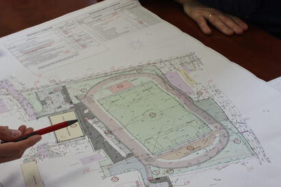 Согласно проектной документации, общая площадь здания трибуны стадиона на 500 мест составит 707,5 кв. м. Также подрядчику необходимо было построить футбольное поле размером 100×64 метра, круговую и прямую беговые дорожки длиной 400 и 125 метров соответственно, площадки для тренажёров и прыжков в длину.