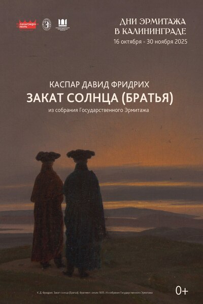 «Произведение „Закат солнца (Братья)“ было написано на холсте, около 1835 года, когда Каспар Давид Фридрих создавал вариации и копии своих ранних произведений для Российского императорского дома. Одной из важнейших тем в картине является братство, духовное единство, способное связать людей сквозь расстояния и даже победить смерть. Эта идея была не только данью романтической философии, но созвучна личным переживаниям автора», — рассказали в пресс-службе. Название картине дали хранители Эрмитажа по аналогии с работой, экспонировавшейся на выставке в Кенигсберге в 1832 году.