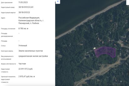 Областные власти выдали разрешение на строительство четырёх среднеэтажных многоквартирных домов в пос. Рыбное Пионерского округа, в 230 метрах от моря. Разрешение получило ООО «Западный ветер» 2 октября. Решение министерства градостроительной политики опубликовано в соответствующем реестре на сайте регионального правительства.