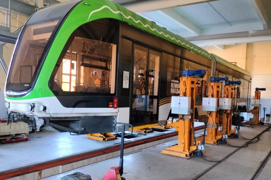 «Первую тележку уже разобрали, бандажи заменили, вагон выкатили. Сейчас готовят к работе второй. Процесс пока идёт медленно: работают с предельной осторожностью, ведь ошибка может обернуться серьёзными тратами. Но, как уверяют специалисты, „руку набьют“ — и дальше пойдёт быстрее. — добавляет пресс-служба. — Кстати, перед заменой бандажей тележки „кантуются“ — то есть передняя и задняя меняются местами. Это делается для выравнивания износа: трамвай ведь большую часть времени ездит по кругу, постоянно поворачивая в одну сторону, и колёса с одной стороны стираются сильнее. Без такой „перестановки“ колесо тележки с одной стороны приобрело бы форму „яйца“».