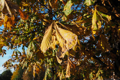 В последние годы городские каштаны сталкиваются с нашествием вредителей — это охридская моль-минер, из-за которой их листья преждевременно желтеют и засыхают, а деревья слабеют.