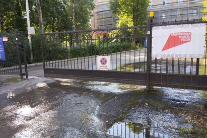 В Калининграде с августа не удаётся ликвидировать утечку в подвале школы № 4, расположенной на улице Карла Маркса. Если в августе вода с территории закрытой на ремонт школы ручьём текла через тротуар в ливнёвку на проезжей части, то теперь её насосом перекачивают в колодец, расположенный со стороны улицы Разина.