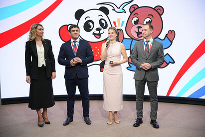 Талисманами игр станут бурый мишка и панда. Эти персонажи давно являются главными символами российско-китайской дружбы. В этот раз они предстали в образе спортсменов, чья форма отражает национальные традиции двух стран.