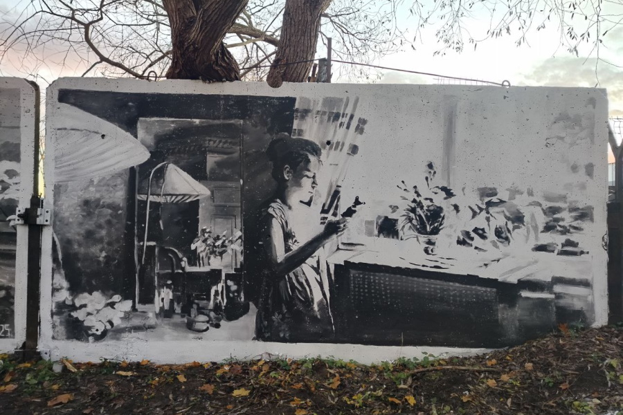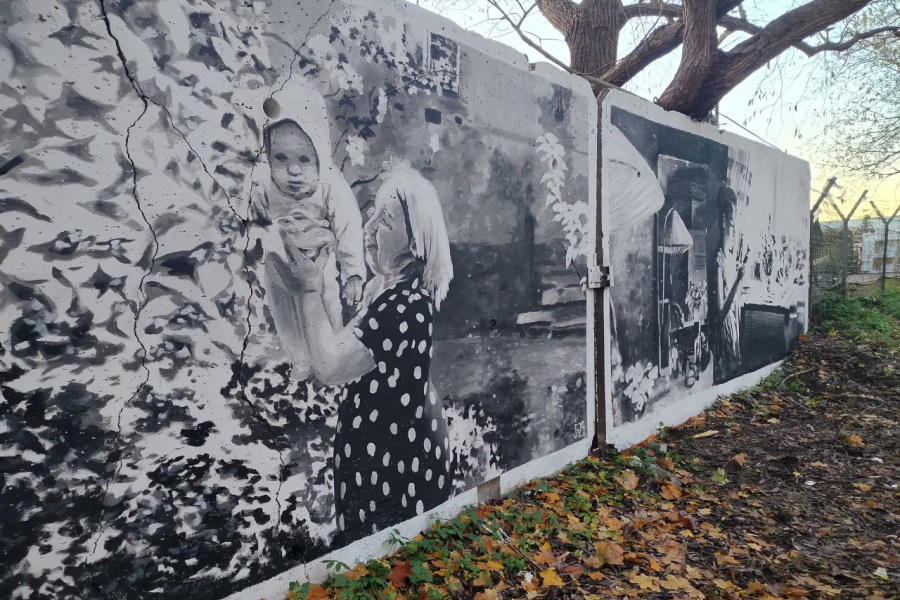 В Калининграде на улице Камской появился новый мурал на кладбище первых переселенцев. Автором настенной картины стал калининградский уличный художник JÖN (он сообщил «Новому Калининграду», что закончил свою работу в минувшую субботу). Сюжетом для его работы стали архивные фотографии Виктории Осипенко (руководителя АНО «ЮЛА» — прим. «Нового Калининграда»). Виктория рассказала, что она и стала автором этой идеи.
