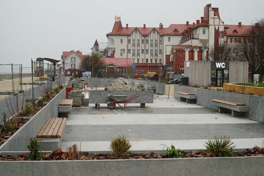 В Зеленоградске на территории нового парклета на площади «Роза ветров» начался монтаж архитектурного элемента — нестационарного объекта в виде бетонной волны. Об этом сообщает муниципальная газета «Волна» со ссылкой на администрацию округа.