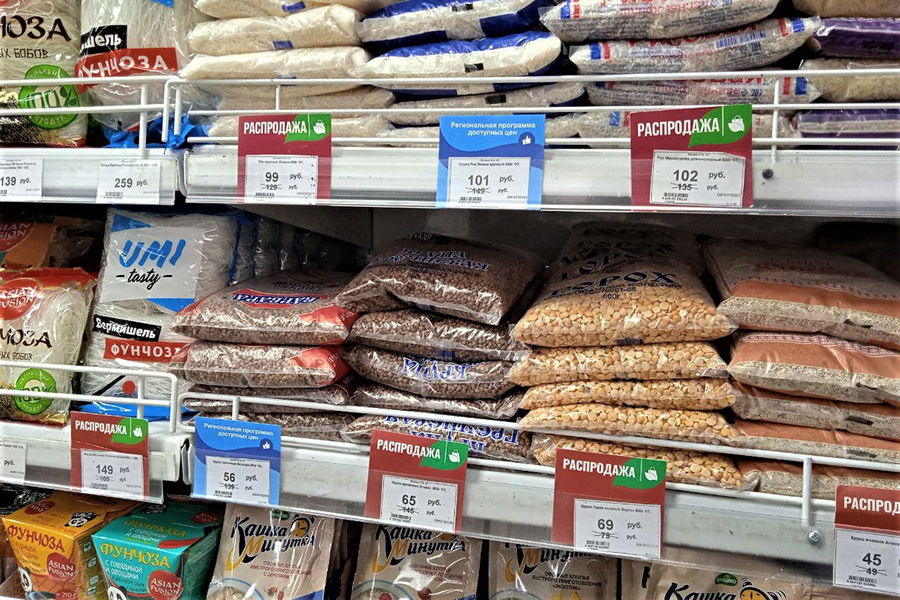 Цены с «минимальной наценкой» владельцы магазинов установили на несколько позиций круп, в том числе гречневую, а также на муку, сахар и черный чай. В магазинах, где организована продажа овощей и молочных продуктов, по «синим ценникам» можно купить морковь, лук, картофель, молоко, сметану и творог преимущественно от калининградских производителей.