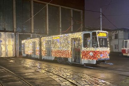 «Сегодня примерно в 14 часов на маршрут № 5 вышел вагон Tatra KT4SU № 420. Он украшен новогодними гирляндами — так же, как и год назад. Это первое появление праздничного трамвая в уходящем 2025 году. Очевидно, все новогодние и рождественские дни он будет украшать наш город», — сообщил администратор сообщества.