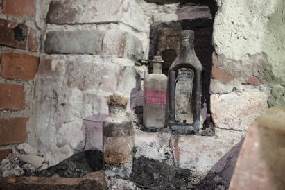 «На днях, разбирая кирпичную кладку на одном из каминов, которые были заложены в разное время, рабочие обнаружили три ёмкости — бутылки. На двух сохранились оригинальные этикетки. Предметы переданы в музей, исследованием этой находки уже занимаются научные сотрудники, — сообщает пресс-служба музея. — Внутри бутылок сохранилось содержимое, а на этикетках считывается часть текста. Разгадкой „капсулы времени“ обязательно поделимся».