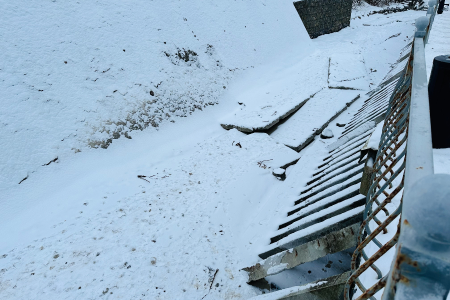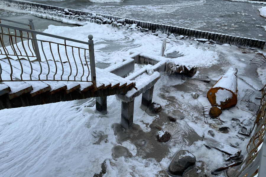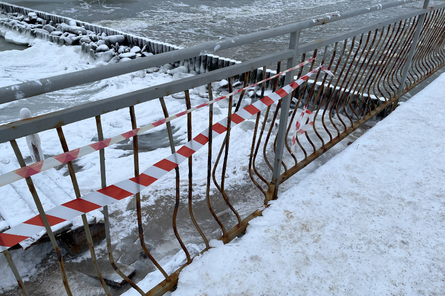 В Пионерском после зимних штормов оказалась разрушена лестница, ведущая к пляжу со стороны Соснового бора. Как убедился корреспондент «Нового Калининграда» 23 января, спуск на пляж в этом месте фактически не функционирует и перекрыт для прохода.